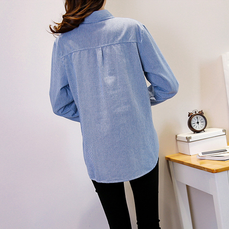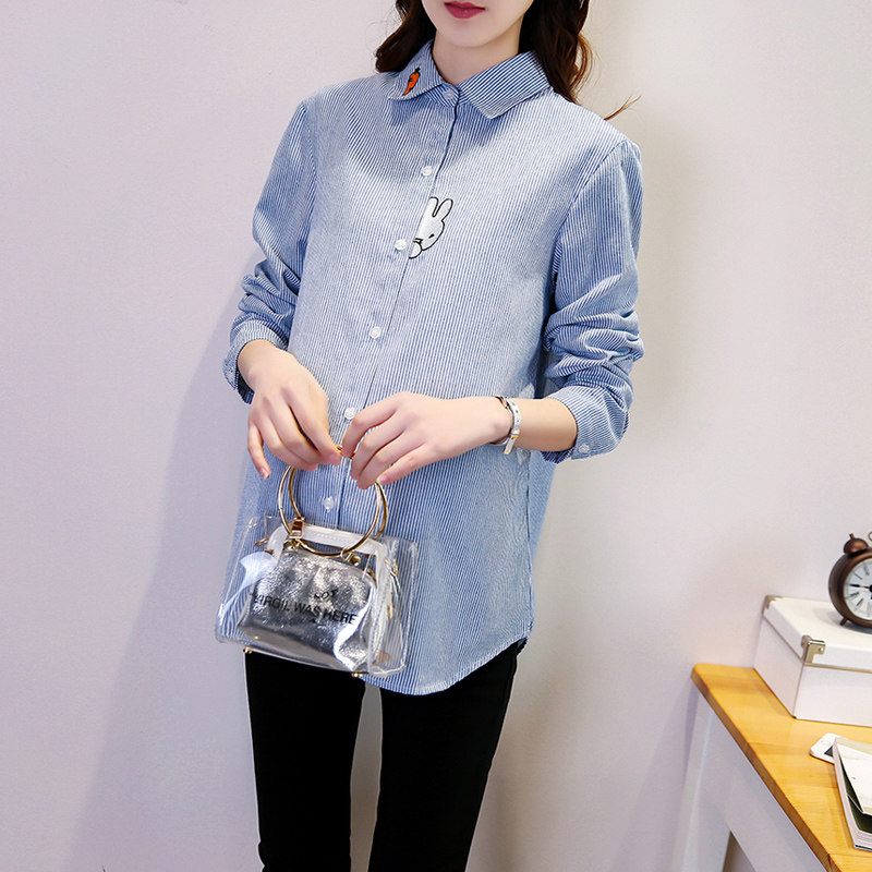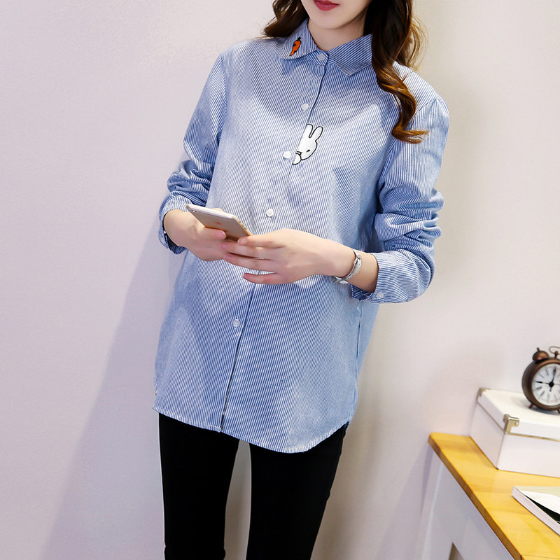 Autumn Maternity Wear Striped Embroidered Shirts Short Long Sleeve Maternity Shirts Spring and Autumn Korean Maternity Bottoming Top