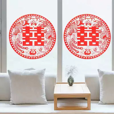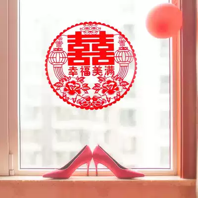 Happy word stickers wedding supplies electrostatic stickers full set of glass window grilles paper-cut door stickers flower wedding room decoration set