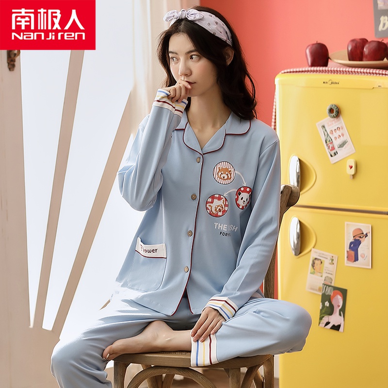 Spring Autumn Winter Pyjamas Woman Long Sleeve Pure Cotton Thin open shirt outside wearing full cotton turtlenecks The family of the two style suits