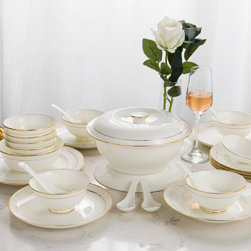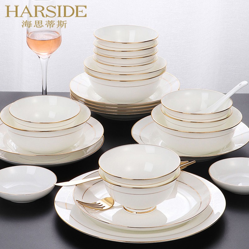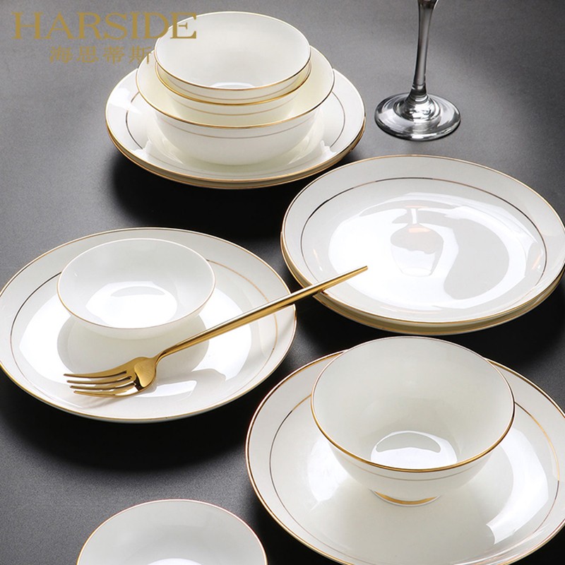 HARSIDE light luxury gold edge porcelain dishes tableware set home Jingdezhen bowl chopsticks plate combination gift