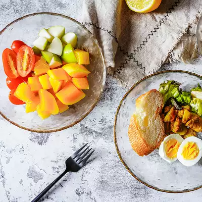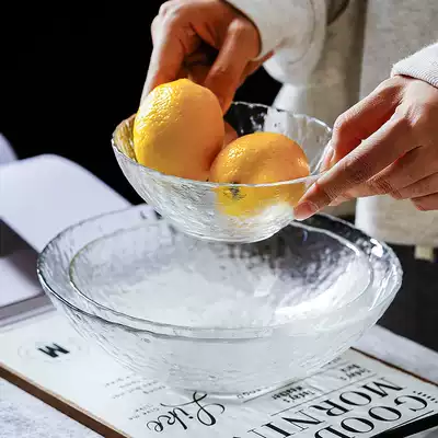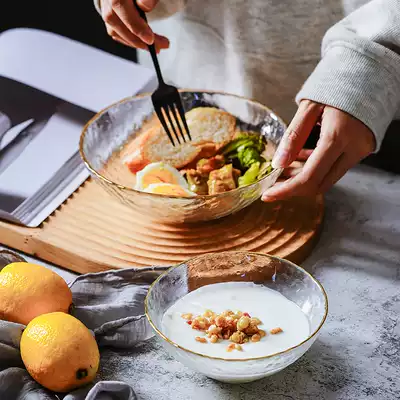 Japanese style gold light luxury style tableware hammer pattern Ice Flower glass bowl single salad bowl dessert bowl beautiful plate
