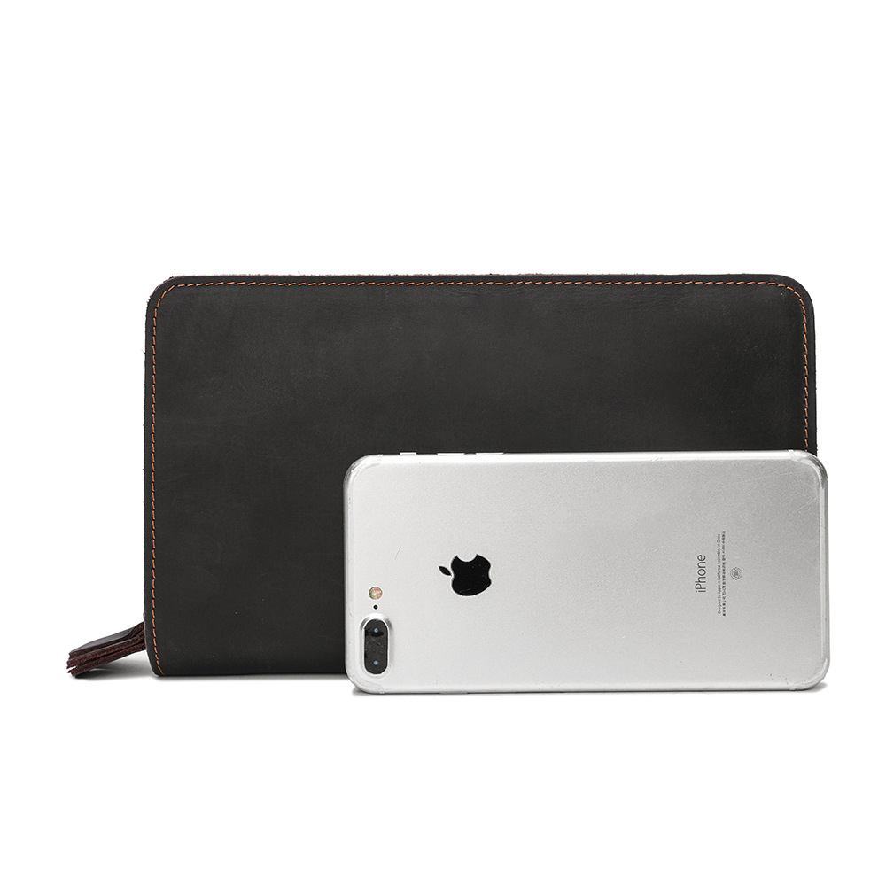 New Mad Mappie Wallet Retro Head Layer Bull Leather Men's Hand Grab Bag Multifunction Double Pull-Bag Wallet-Wallet Screens Bag