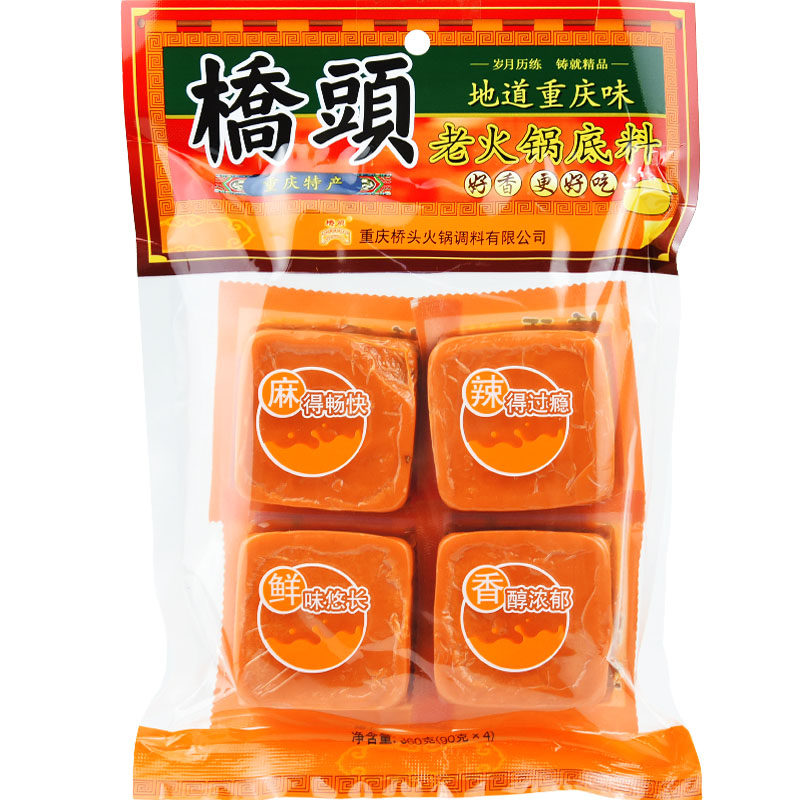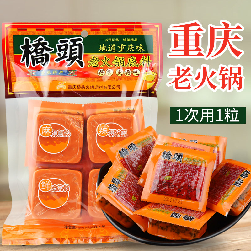 Chongqing Special Production Bridgehead Hotpot Soup Bottom 360g (4 Small Pieces) Independent Small Packaging Single Dormitory Hot Pot Risking Dish