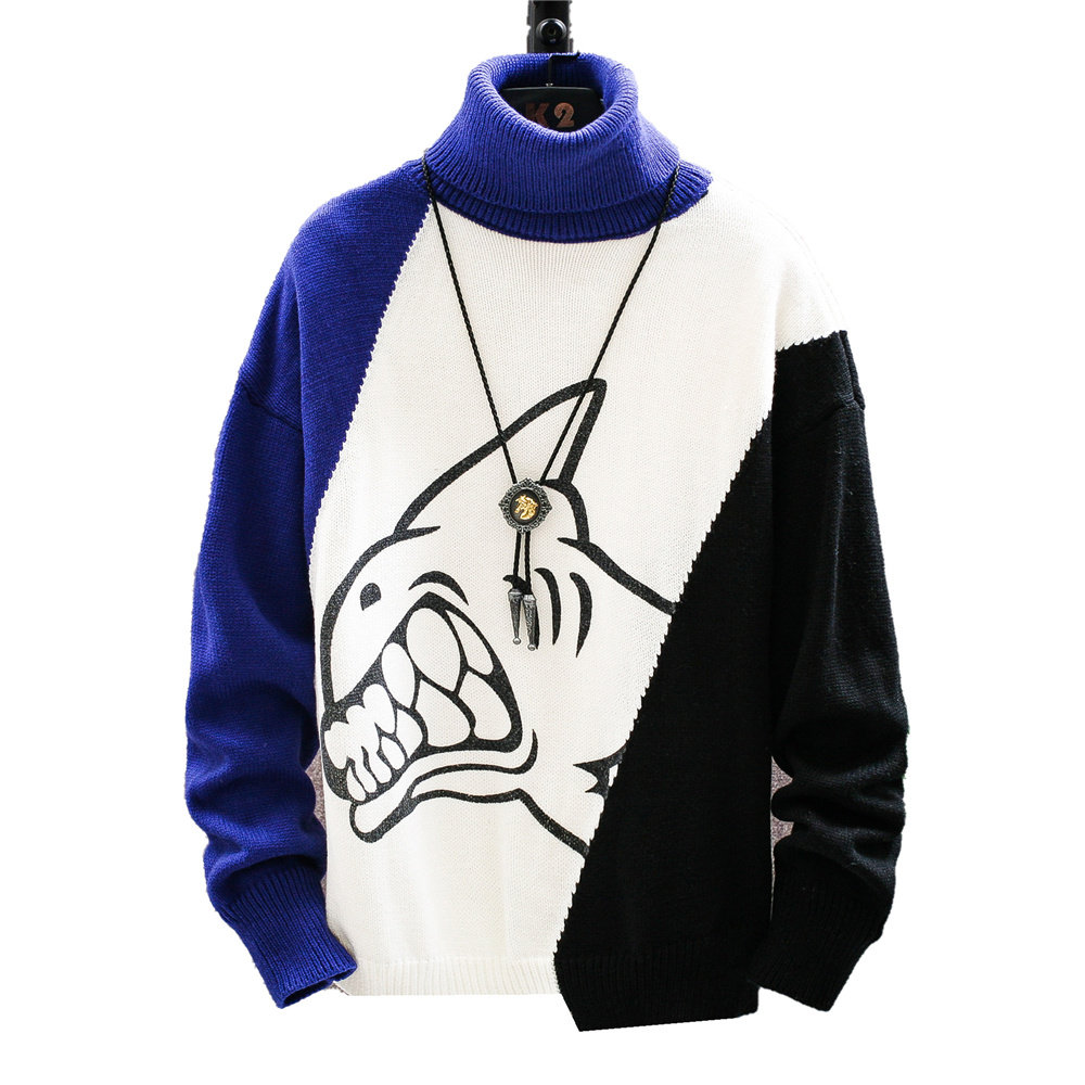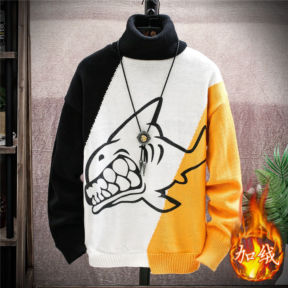 Teenager turtleneck sweater men's plus velvet thick Korean version winter sanitary clothing boys warm sweater thick bottoming shirt