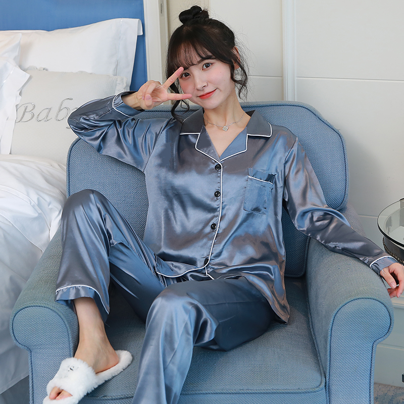 Pajamas women's spring and autumn ice silk long-sleeved autumn pink large size 200 catties fat mm two-piece suit silk thin summer