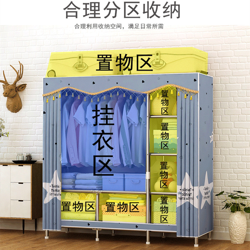 Folding wardrobe simple cloth wardrobe exempt from installation steel tube plus coarse reinforcement full steel frame thickened modern minimalist containing hang
