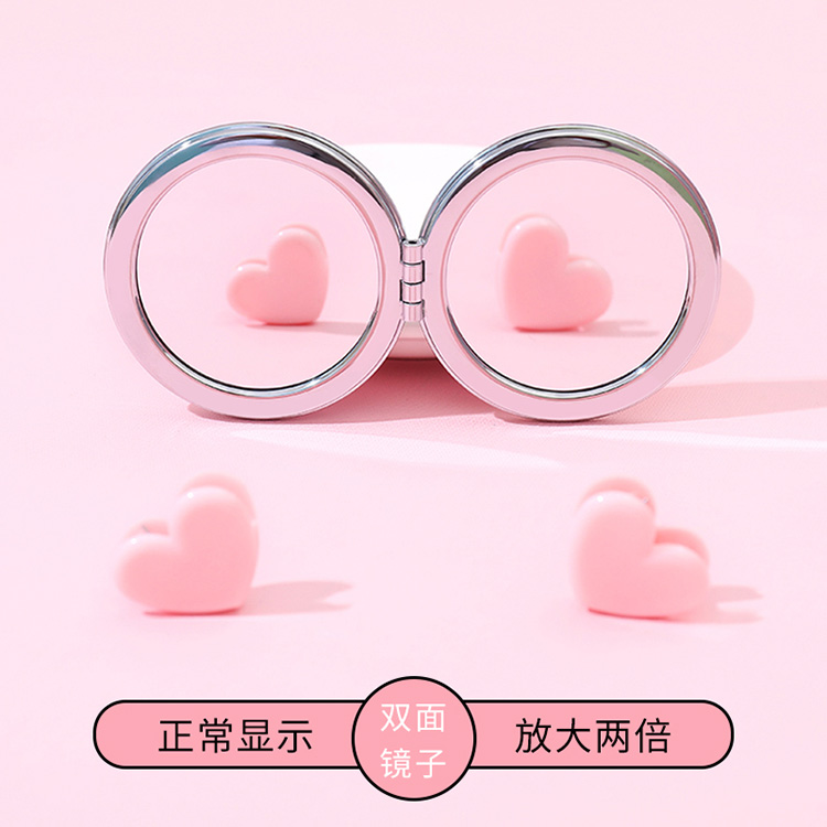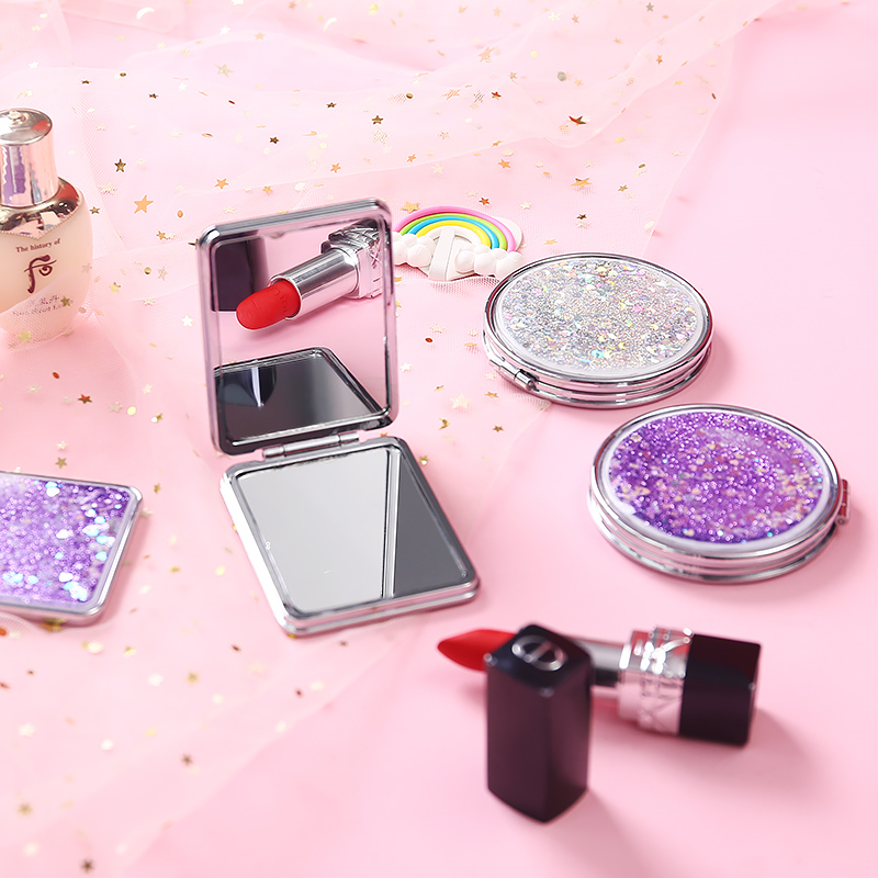 Girly Heart Student Quicksand Double-sided Magnifying Mirror Cute Handheld Small Portable Flip Folding Makeup Mirror