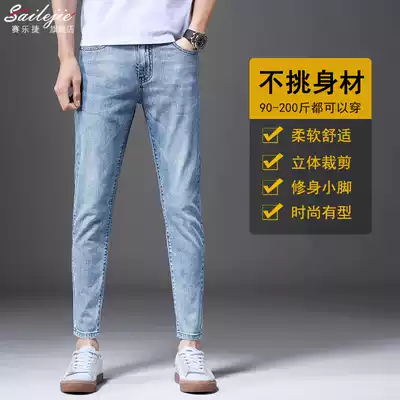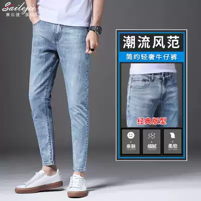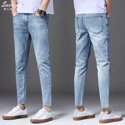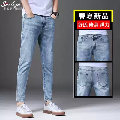 Nine-point denim pants men's spring and autumn slim feet 2021 new trend wild boys casual trousers