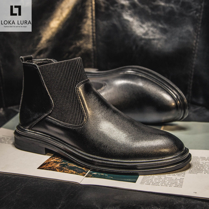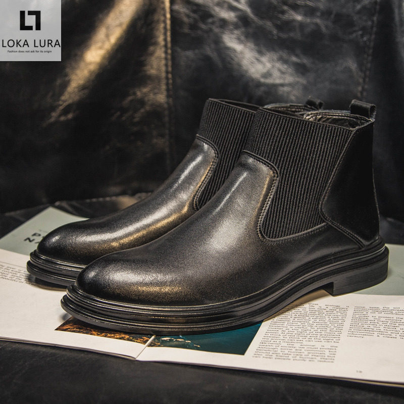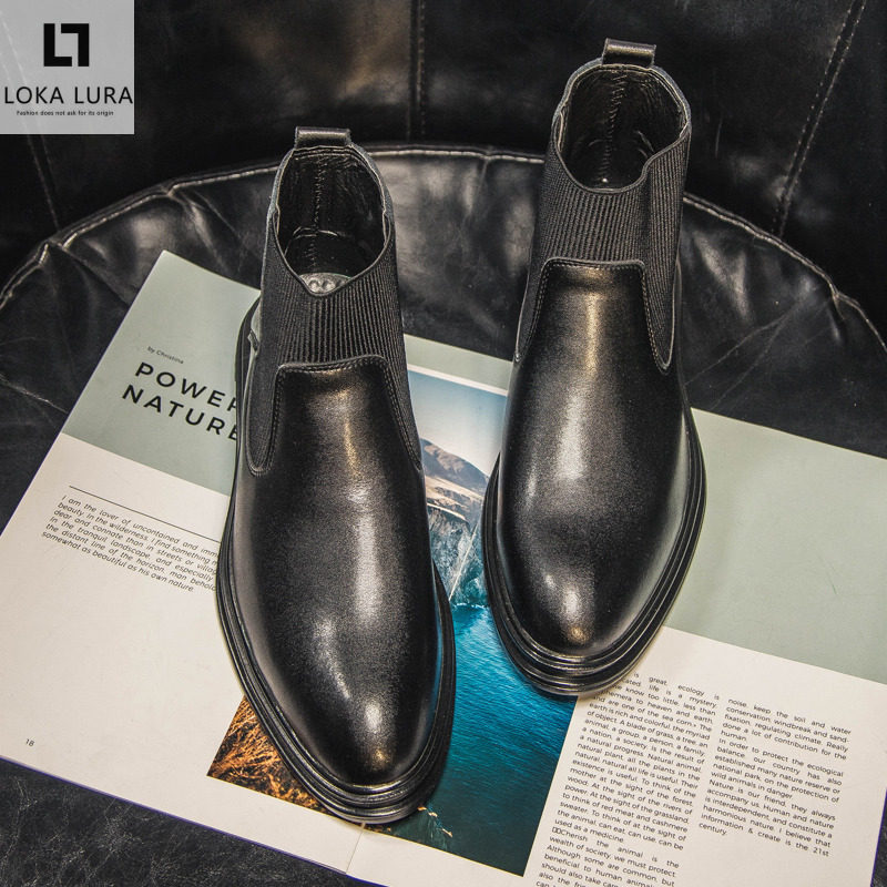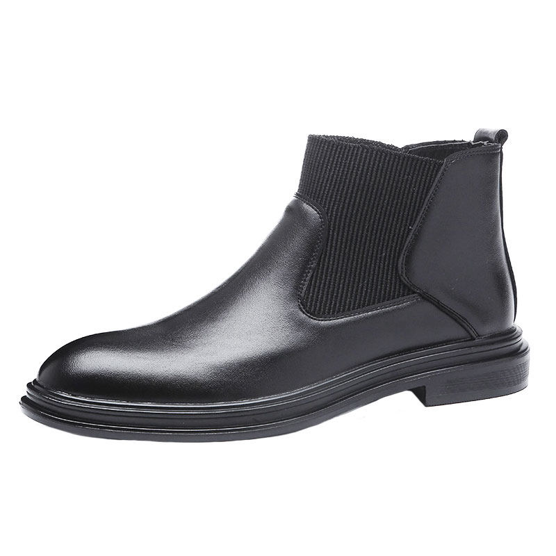 Chelsea boots men's leather British style autumn and winter plus velvet short boots trendy shoes Brogue leather shoes motorcycle high-top Martin boots