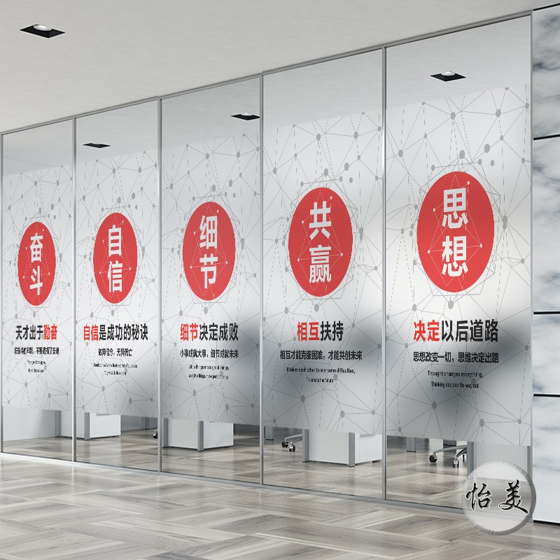 Office Glass Door Sticker Decoration Creative Motivator Slogan Company Partition Cultural Wall Electrostatic Frosted Film