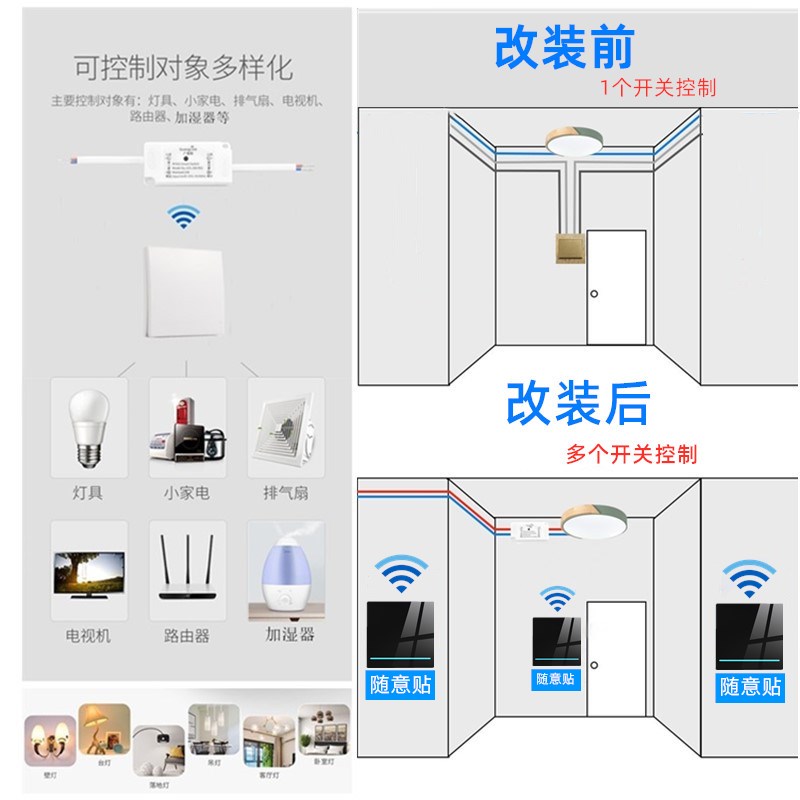 Wireless switch panel wiring-free remote control switch 220v intelligent wireless home double cut switch free paste switch