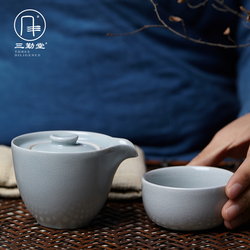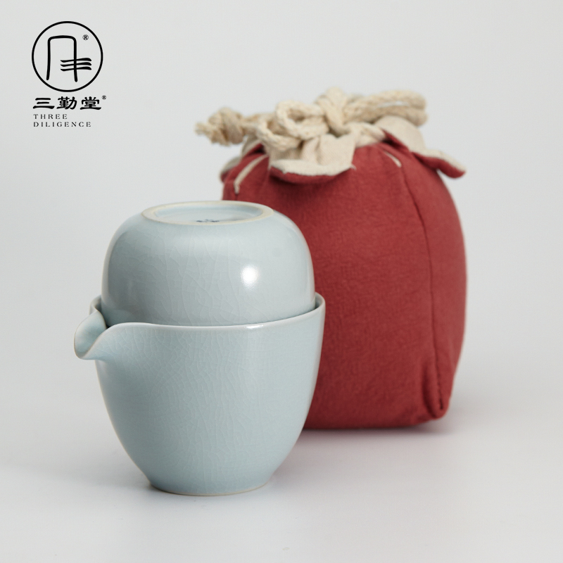 Sanqintang tea set travel carrying fast passenger cup a pot a cup of Jingdezhen ceramic office Ru kiln hand grasp pot tea cup