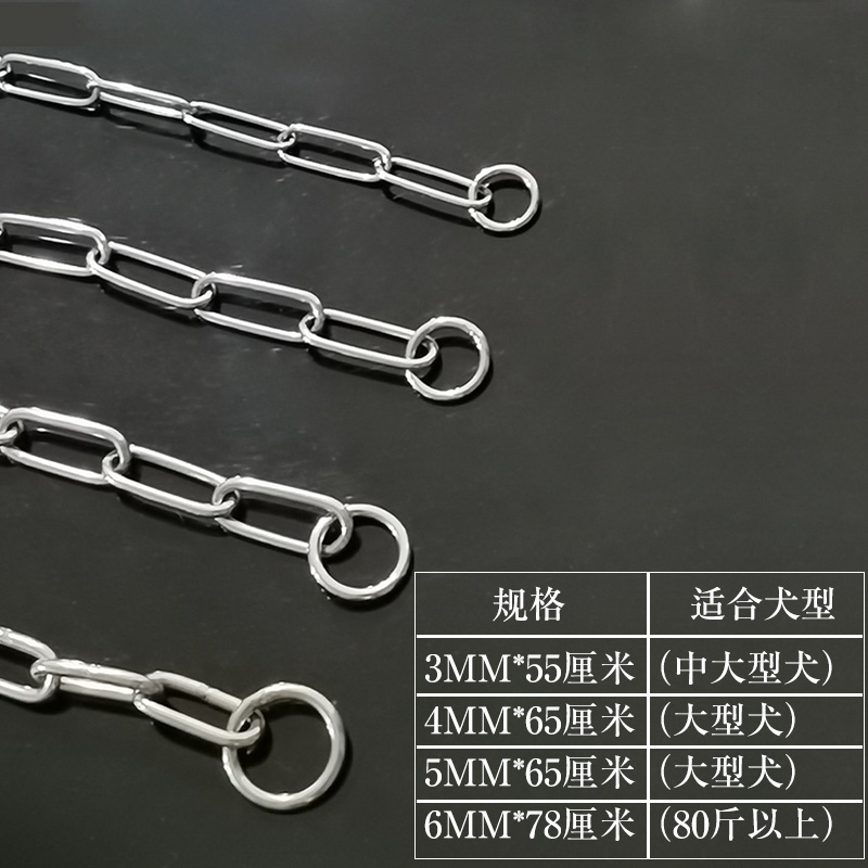 3mm*55cm (small and medium dogs) 4mm*65cm (medium and large dogs) 5mm*65cm (large dogs) 6mm*78cm (recommended 90kg-1