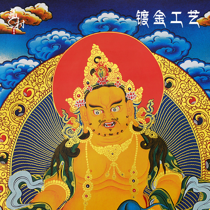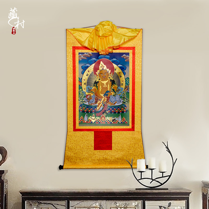 Tibetan village yellow god of wealth Buddha statue thangka hanging painting Tibetan tantric depiction gold imitation hand-painted home living room Tibetan decorative mural