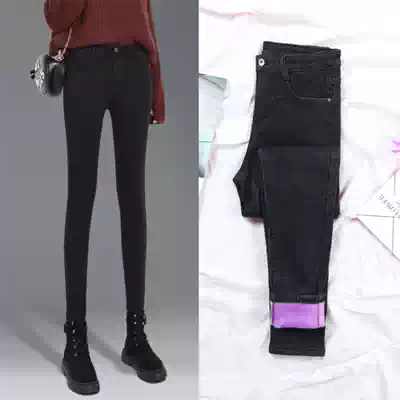 Plus velvet jeans women autumn and winter 2019 new high waist tight stretch stretch thin Korean narrow tube leggings trousers women