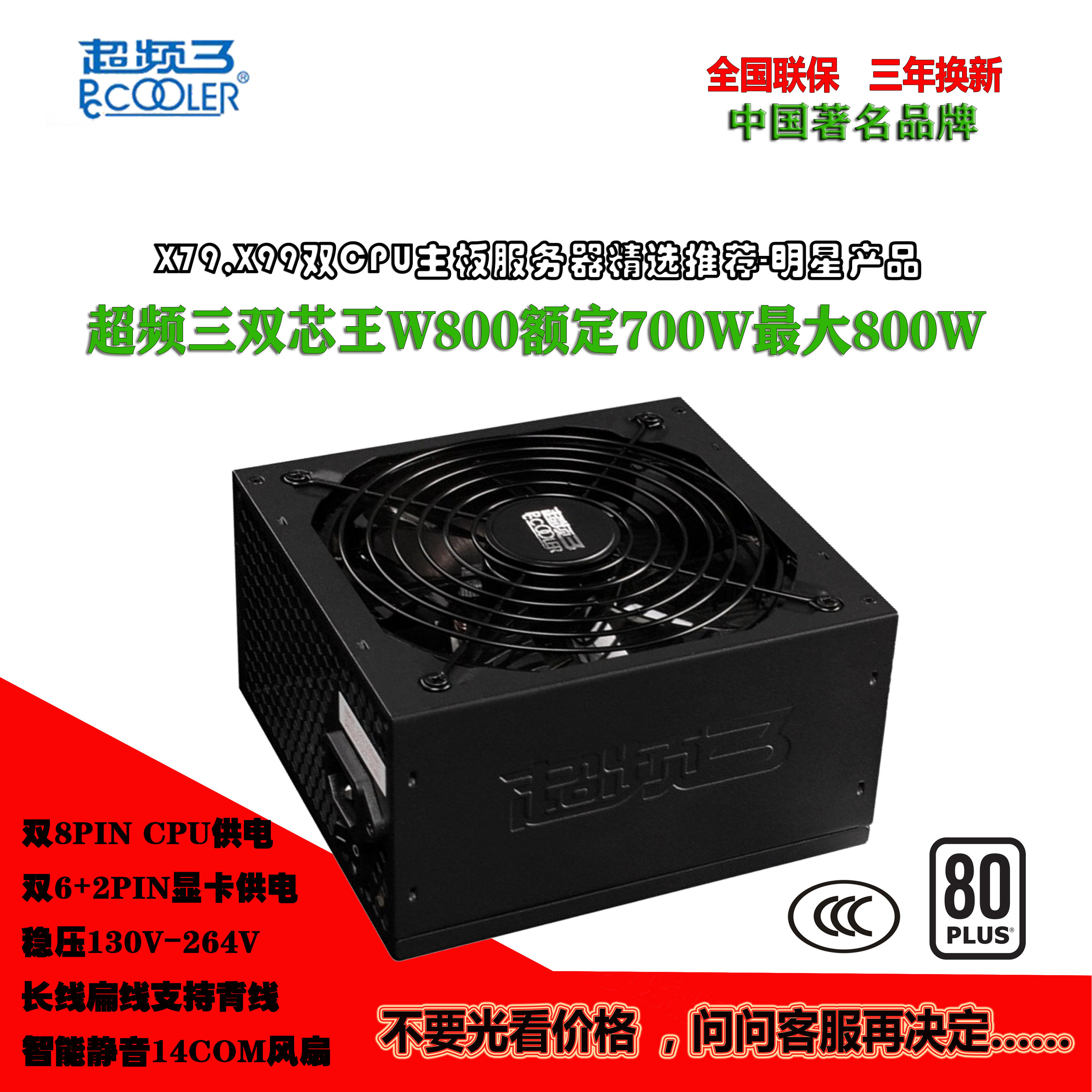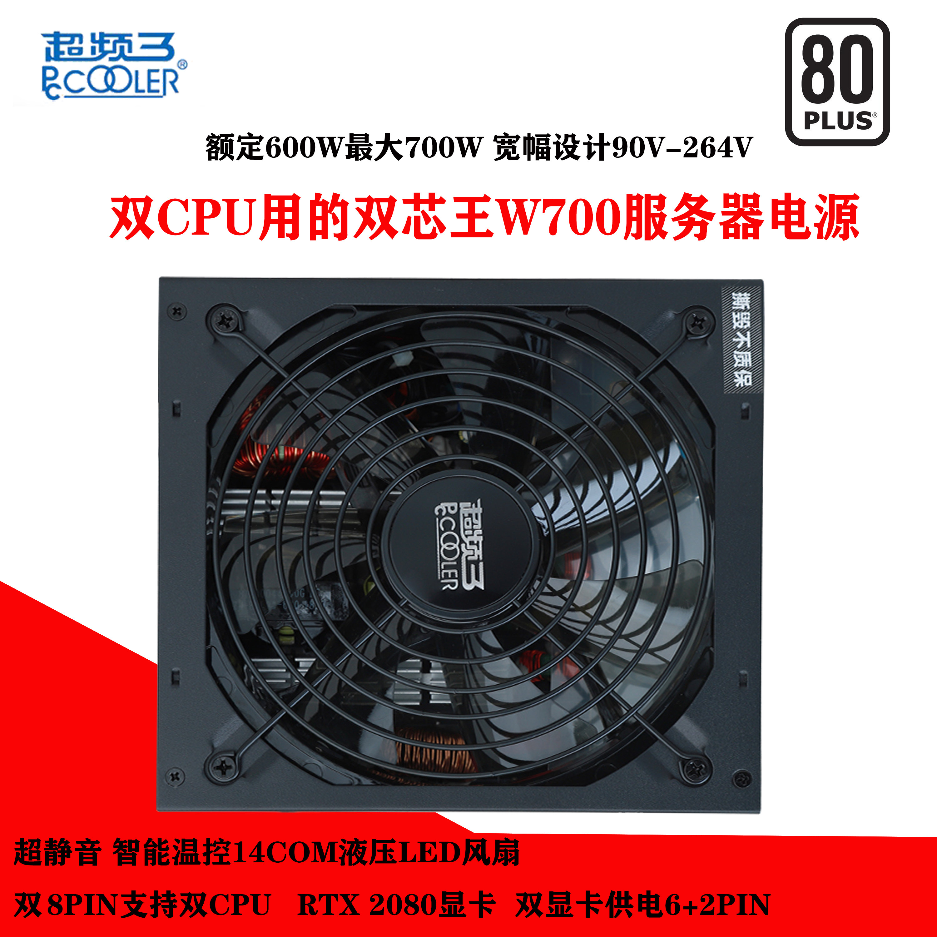Hot selling overclocking three dual core king W700 600W server dual CPU desktop computer mute wide X79X99 power supply