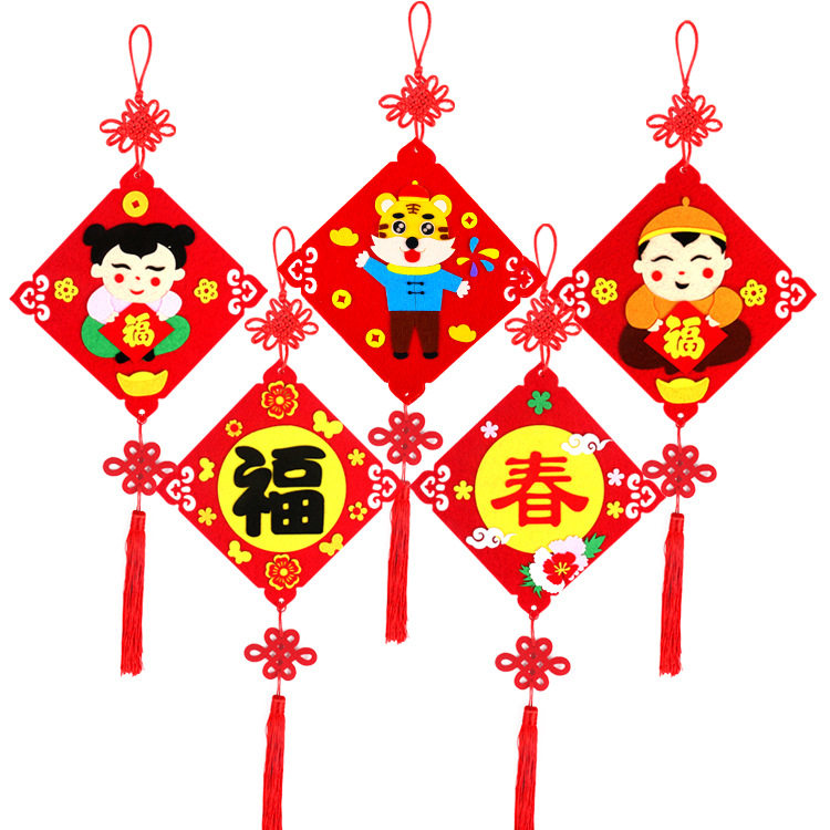 New Year square hollowed-out hanging decoration handmade children DIY unwoven solid adhesive drawing to make decorative material bag