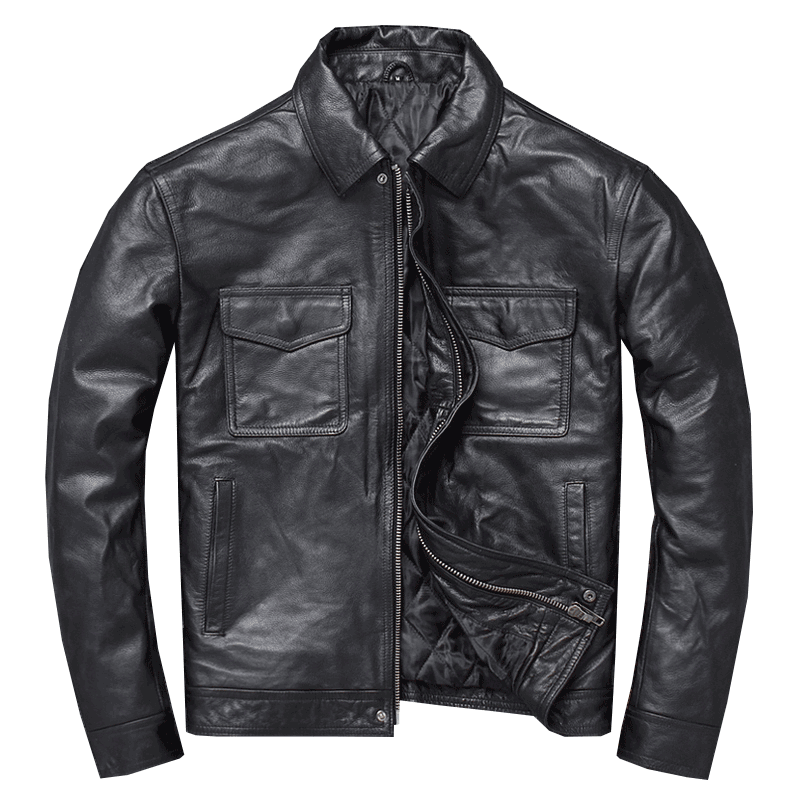 Heavy Pound Winter New Turnover Multi-Pocket Genuine Leather Leather Clothing Men Thickened Anti-Chill Head Layer Calf Leather Locomotive Jacket