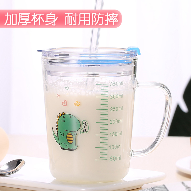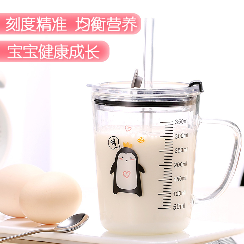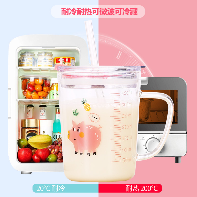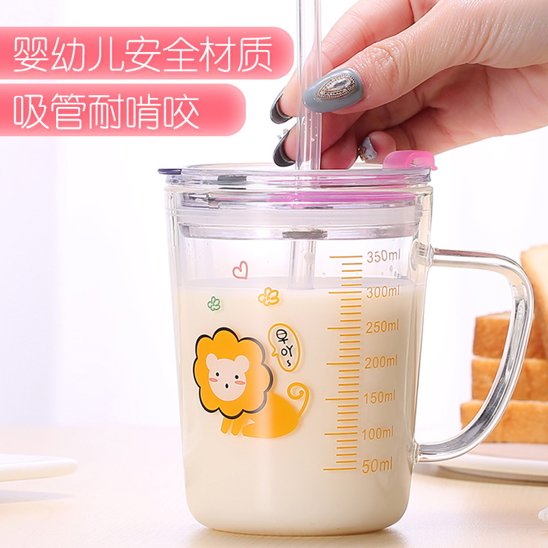 Infant safety material is not afraid of falling with scale Water-free food grade silicone straw Bite-resistant anti-pull Soft good suction thickened anti-falling milk cup-Peach Rabbit(upgraded cartoon scale