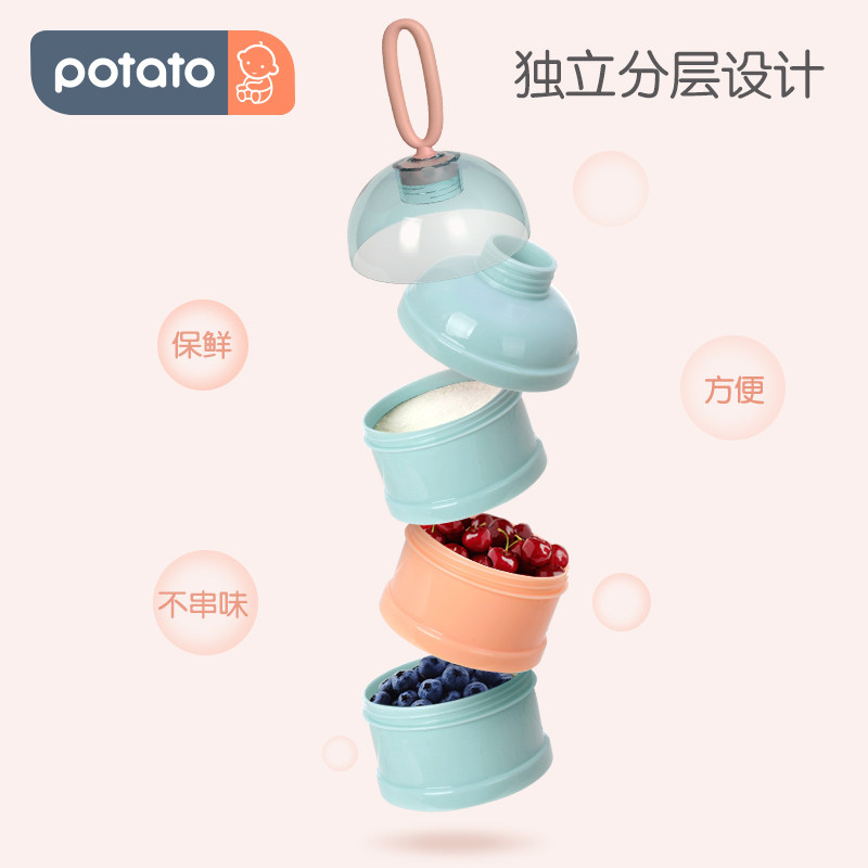 Small potato baby portable out-of-home milk powder box Large capacity milk powder tank Baby clothing three-layer take-away sealed milk powder grid