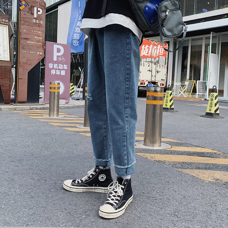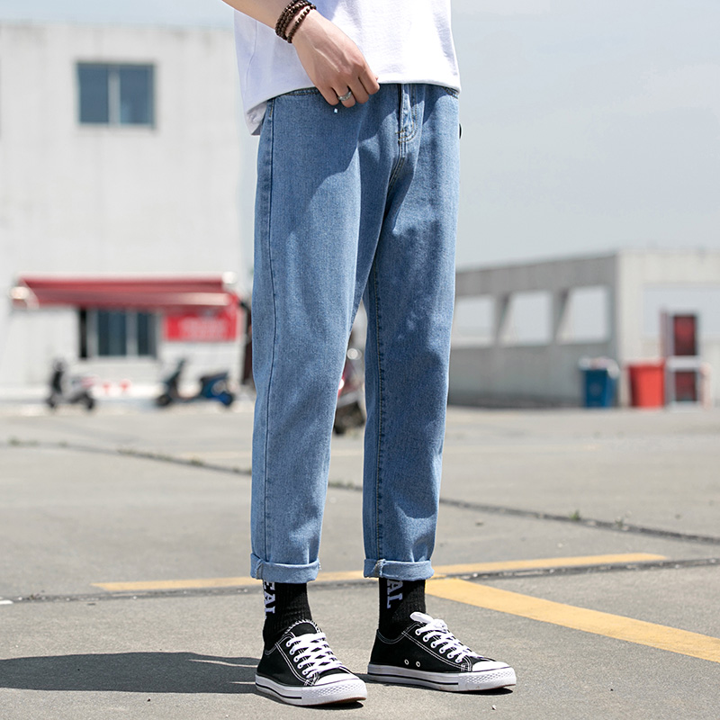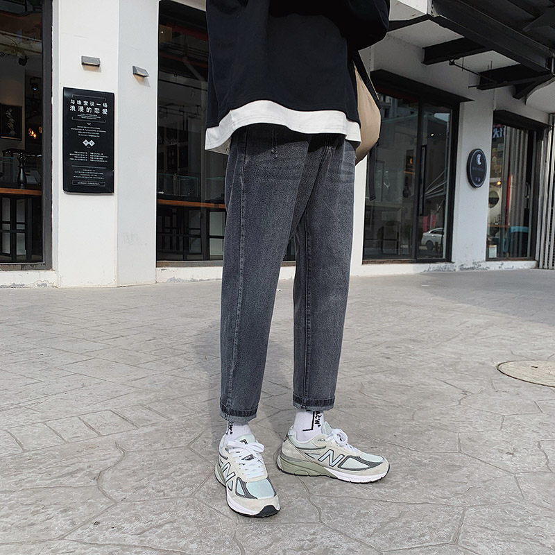 Jeans Men Straight Drum Loose Korean version Trend Spring Fall Tide Card Casual 100 lap 90% long pants broadleg D