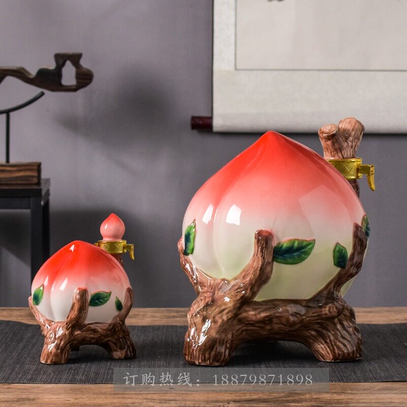 Empty wine bottle decoration Jingdezhen ceramic longevity peach wine jug 1 5 10 jins creative craft beautiful wine jar