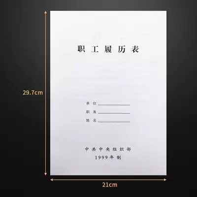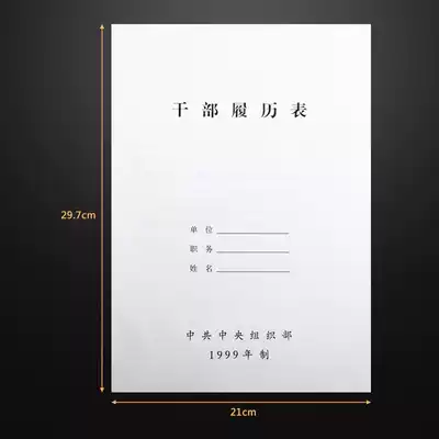 New cadre resume, employee resume, Organization Department of the CPC Central Committee, 1999 edition A4, employee personnel resume, personnel file