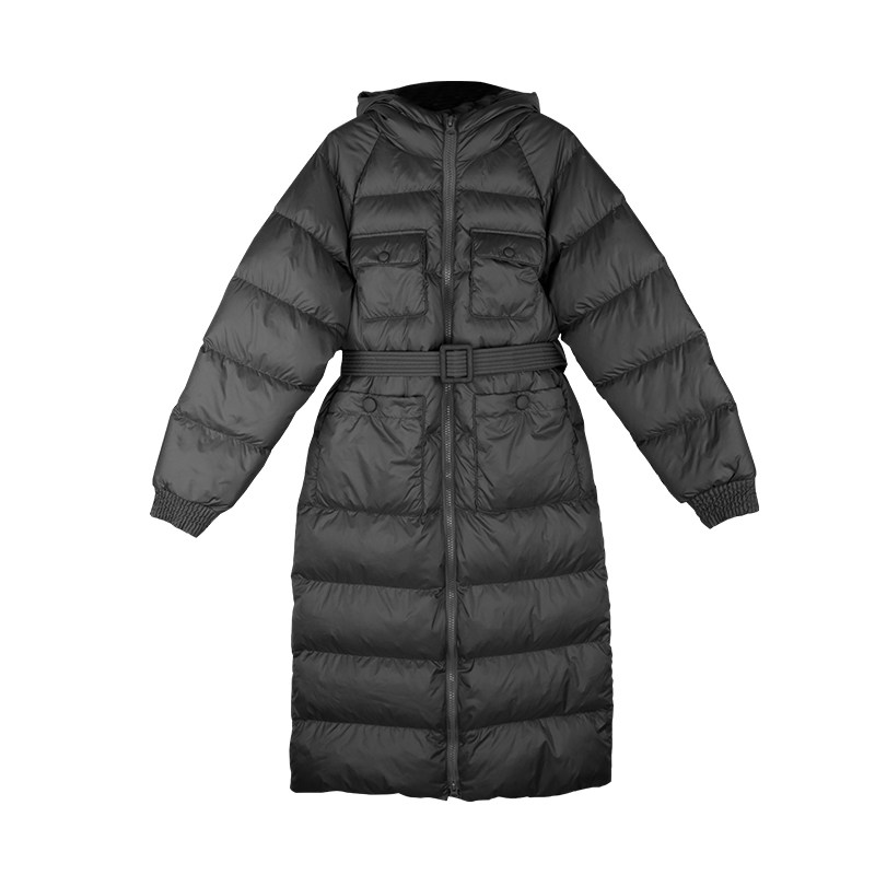 LEIYU down jacket women's long version waist 2021 winter new belt tooling fashion black coat small man