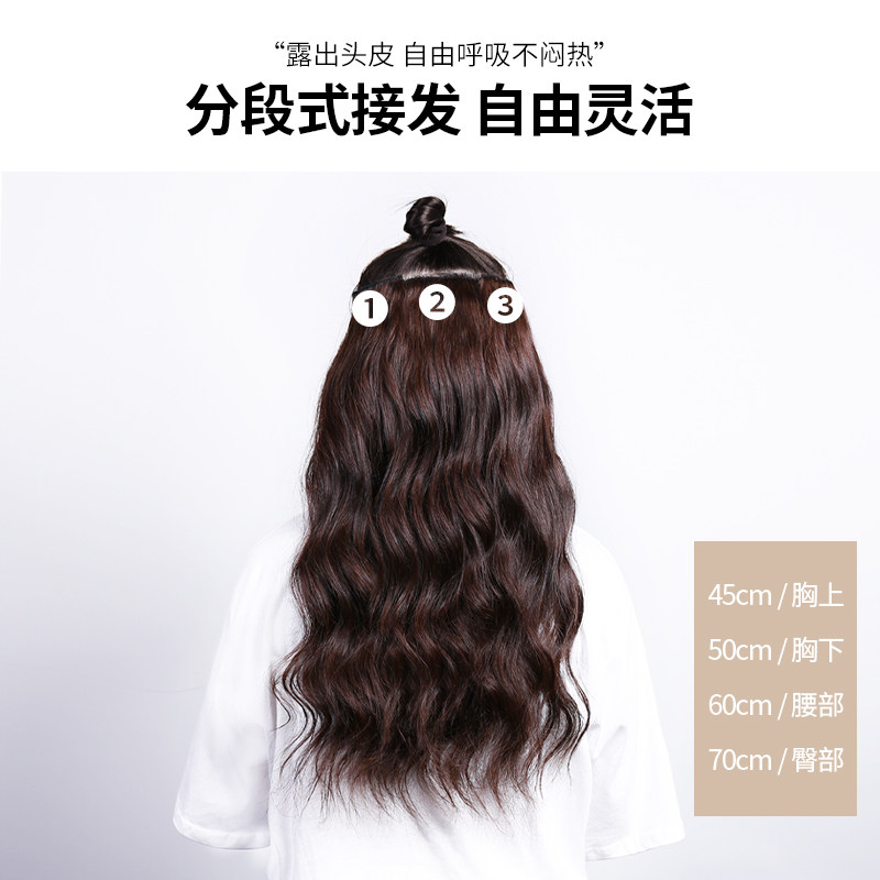 Wig piece One-piece incognito hair extension Real hair extension Long hair net red long curly hair Big wave hair extension piece female wool roll