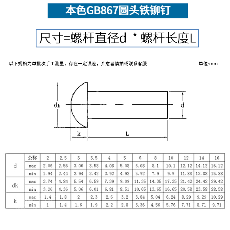 M2M2.5M3M4M5 Iron Color GB867 Round Head Iron Rivet Semi-Round Head Solid Rivet 1 kg Price 50% Off