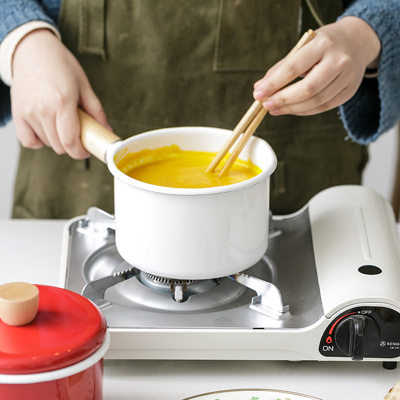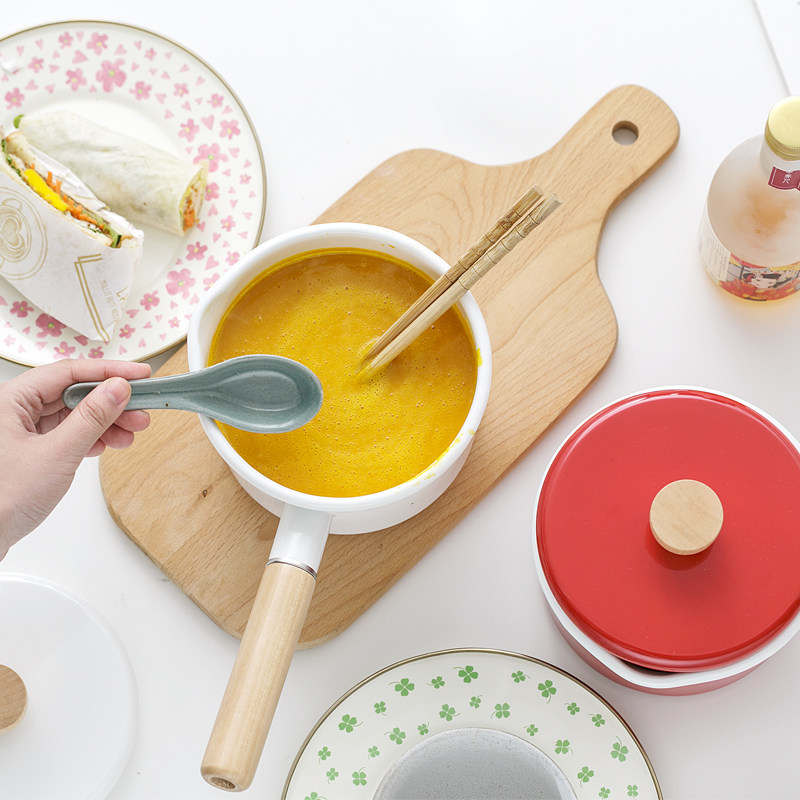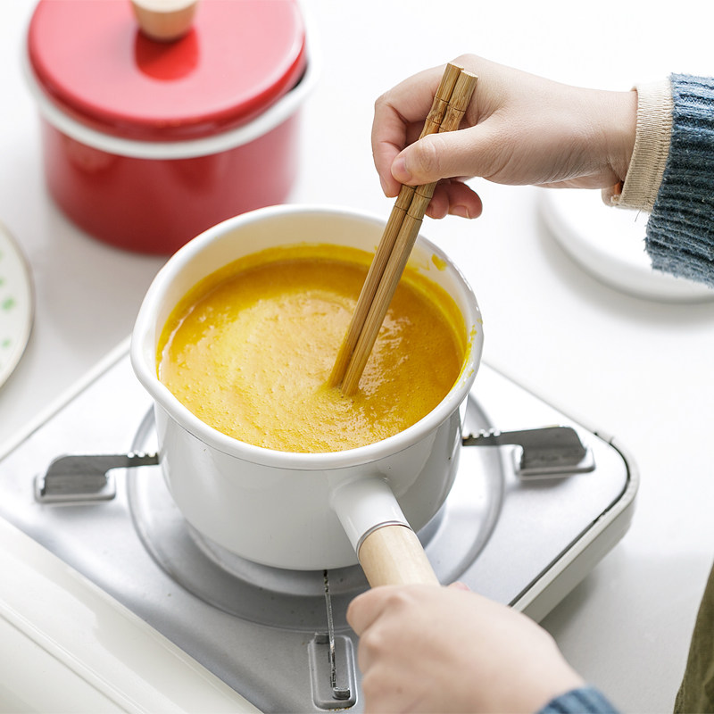 BOBAO Japanese enamel pot thickened single-handle milk pan with lid hot milk boiler General baby Deputy food pan