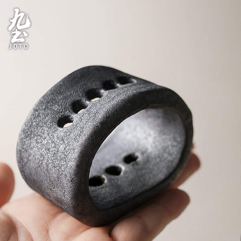 Japanese handmade ceramic flower arrangement Sword Mountain Simple Zen coarse pottery Desktop fixed base Flower road tools small accessories
