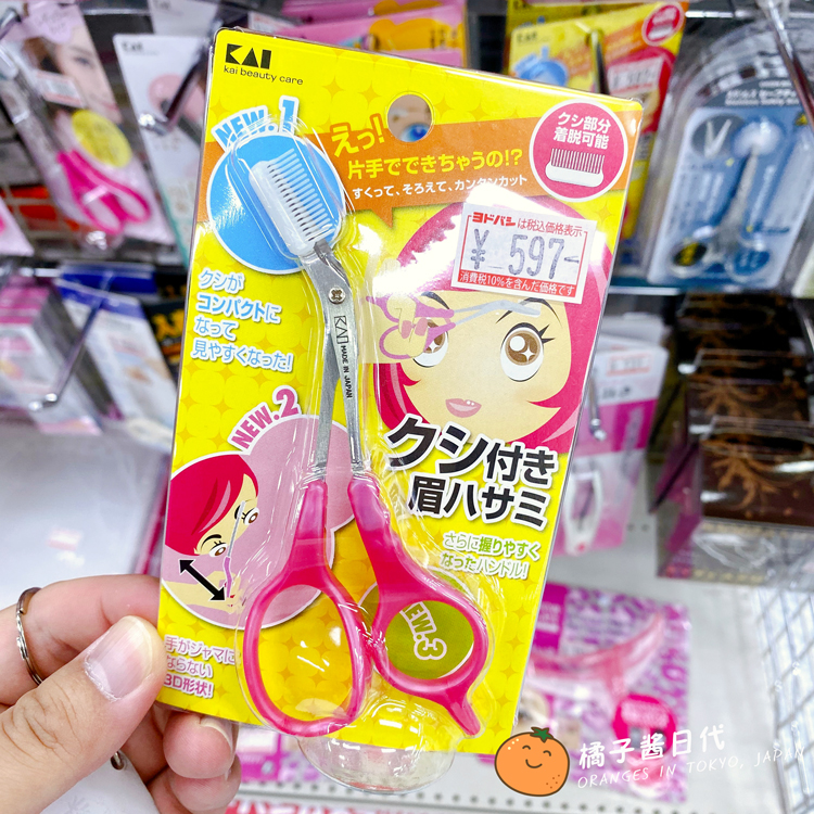 Kai Beiyin Japan imported eyebrow comb eyebrow scissors two-way removable with comb scissors beginner makeup tools