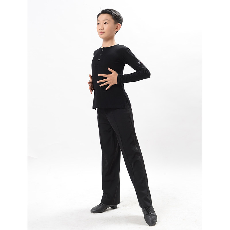 Young boy boy boy acting suit training suit T-shirt long sleeve wood Deir cotton side open fork three-grain buckle