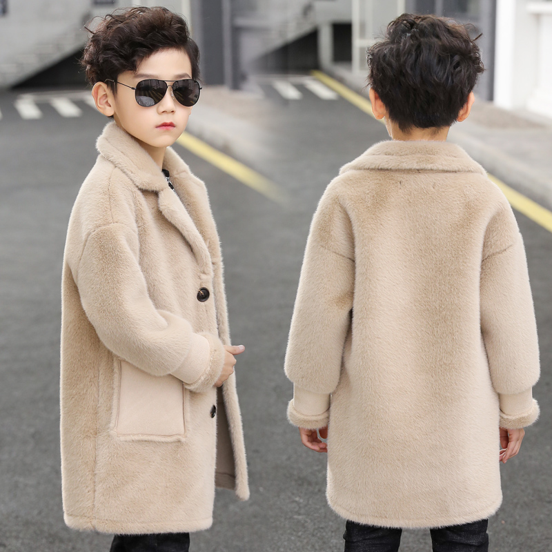 Boy imitation ferret coat 2022 Winter new pimpline integrated boy big clothes CUHK Scout Thickened Jacket
