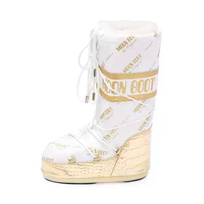 (Tanabata gift)MOON BOOT(50th anniversary) PLATINUM cowhide LOGO strap snow boots women's shoes
