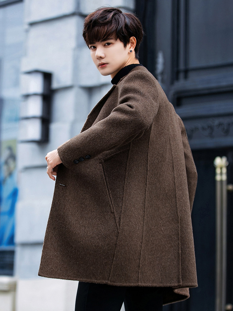 British Men's Winter Wool Wool Coat Black Double-sided Cashmere Coat Men's Mid-length Korean Style Slim Coat