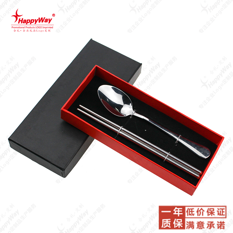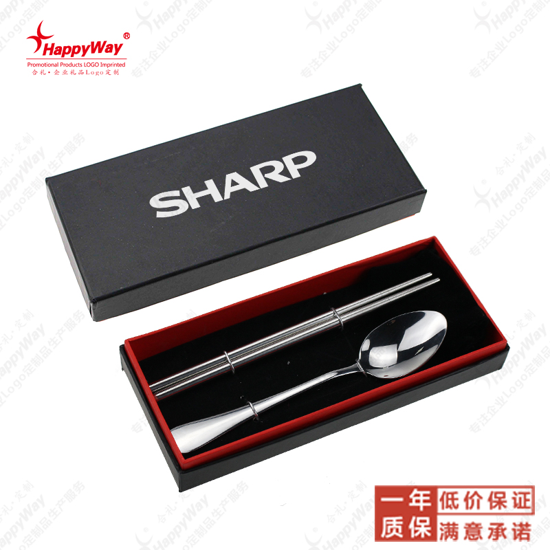 Stainless steel tableware set custom logo printed word portable chopsticks spoon combination travel advertising campaign promotional gifts
