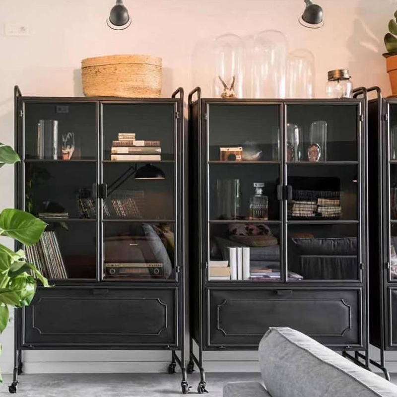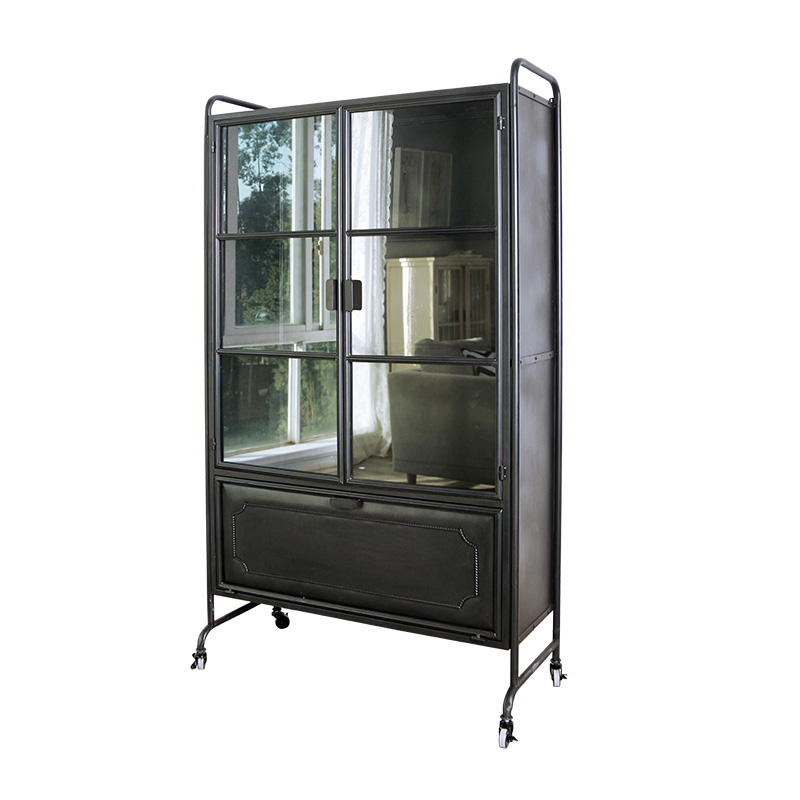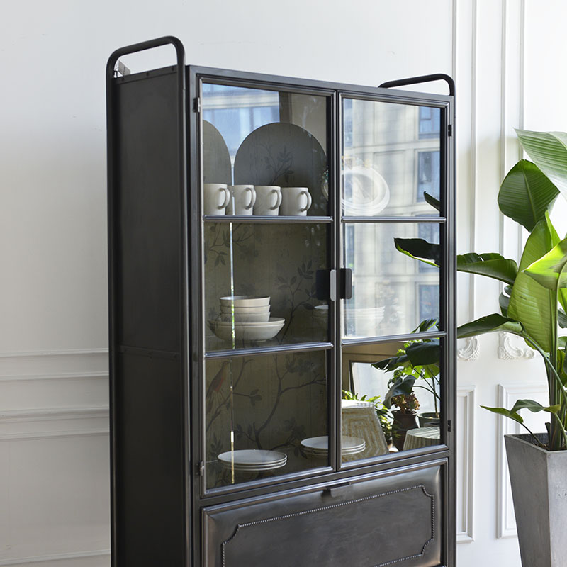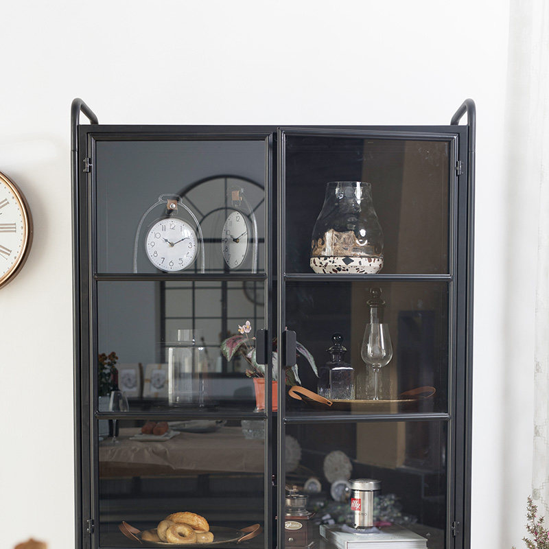 GZ018 American industrial retro style black iron tin living room bookcase porch cabinet model storage display cabinet