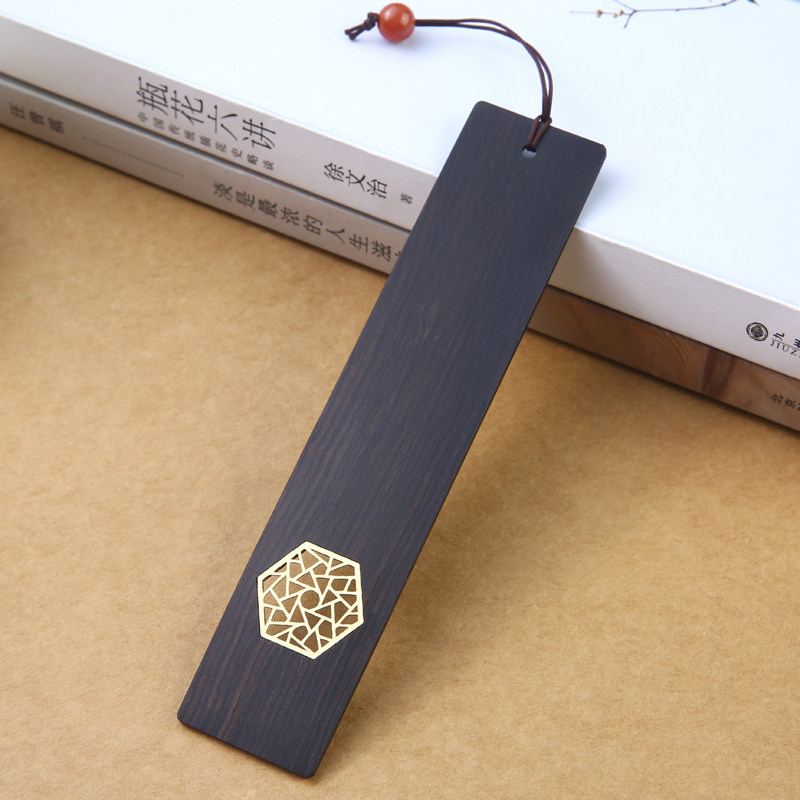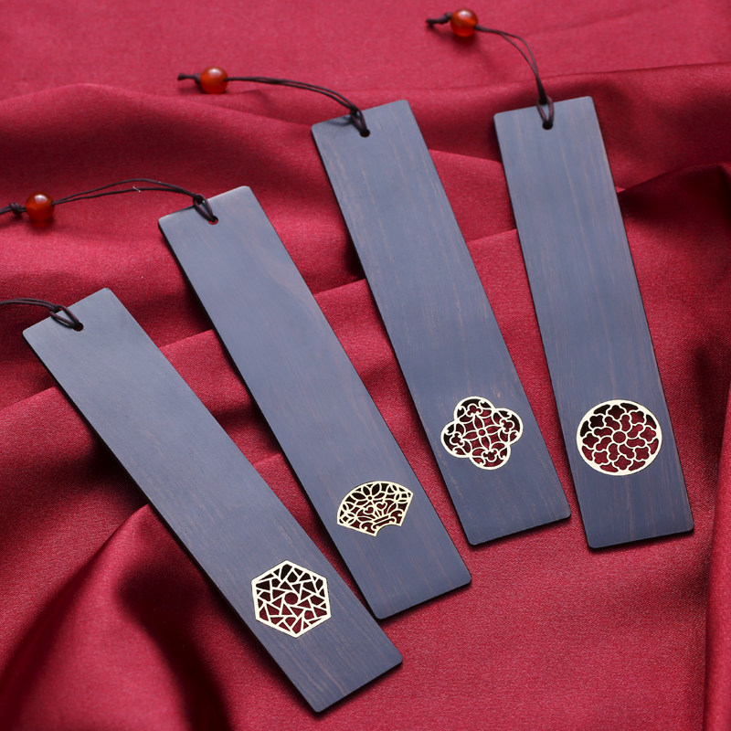 Retro-classical Chinese style mahogany bookmarks for students Exquisite ebony wood simple literature and art inlaid copper metal Creative Palace Museum souvenirs business gifts custom lettering logo