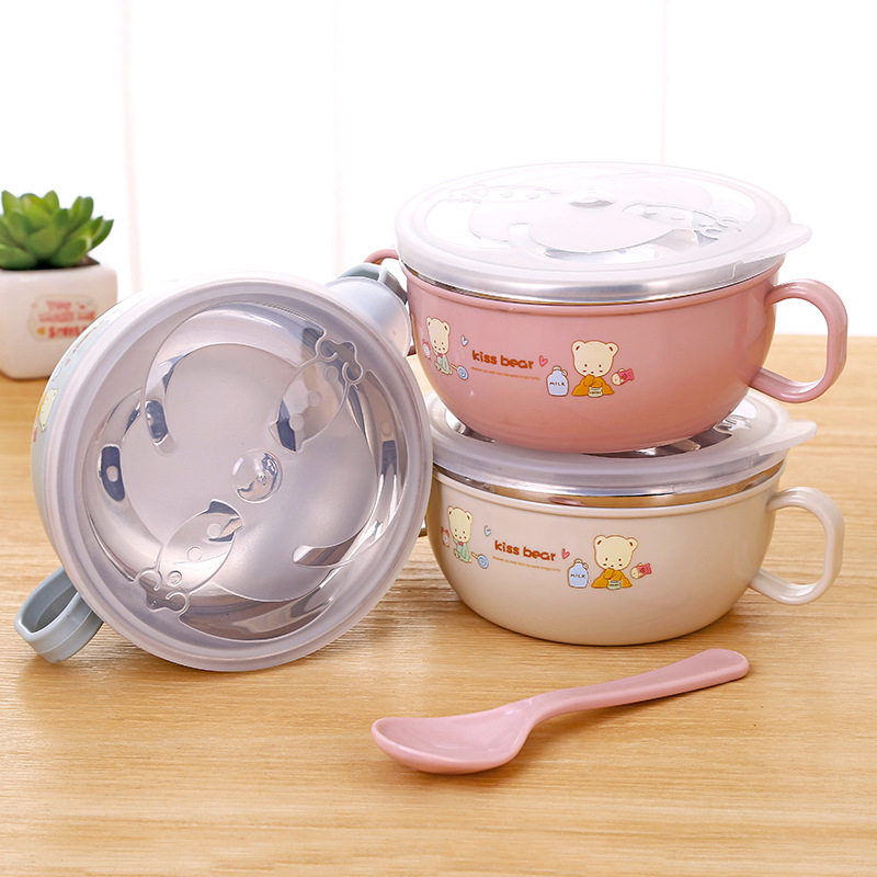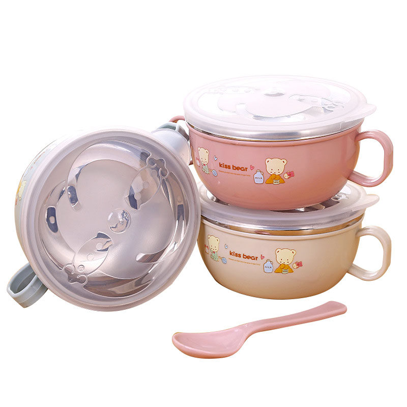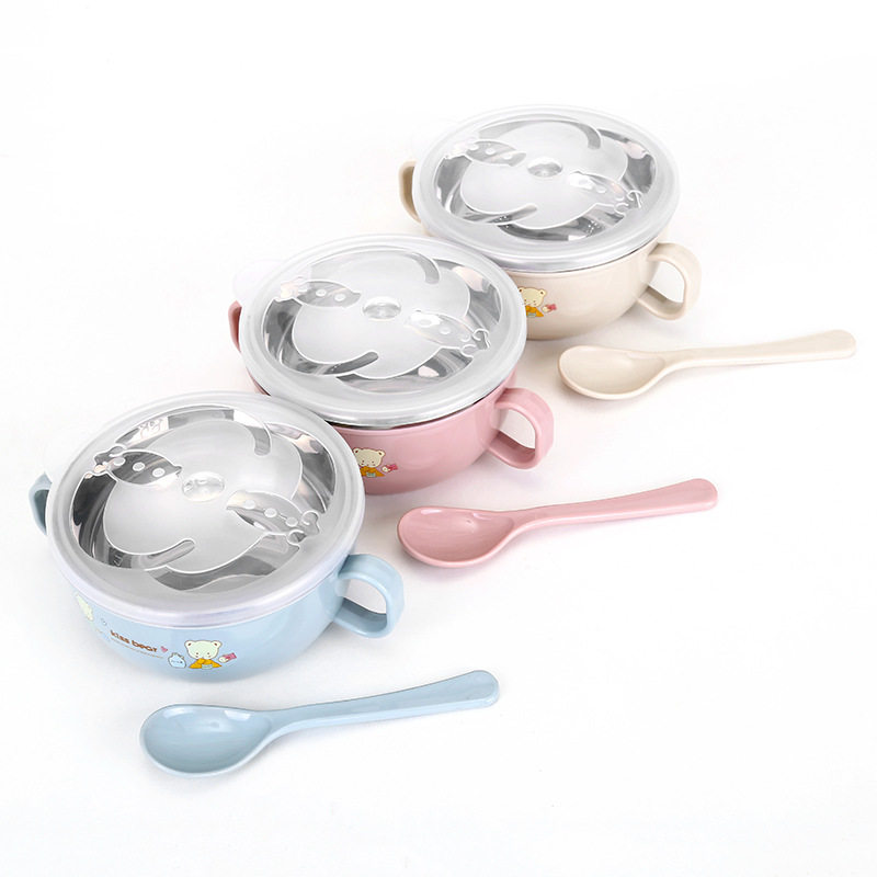 Children's stainless steel bowl household double-layer insulated bowl baby meal anti-fall bowl soup bowl infant non-staple food bowl