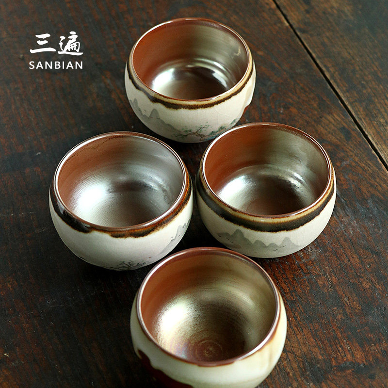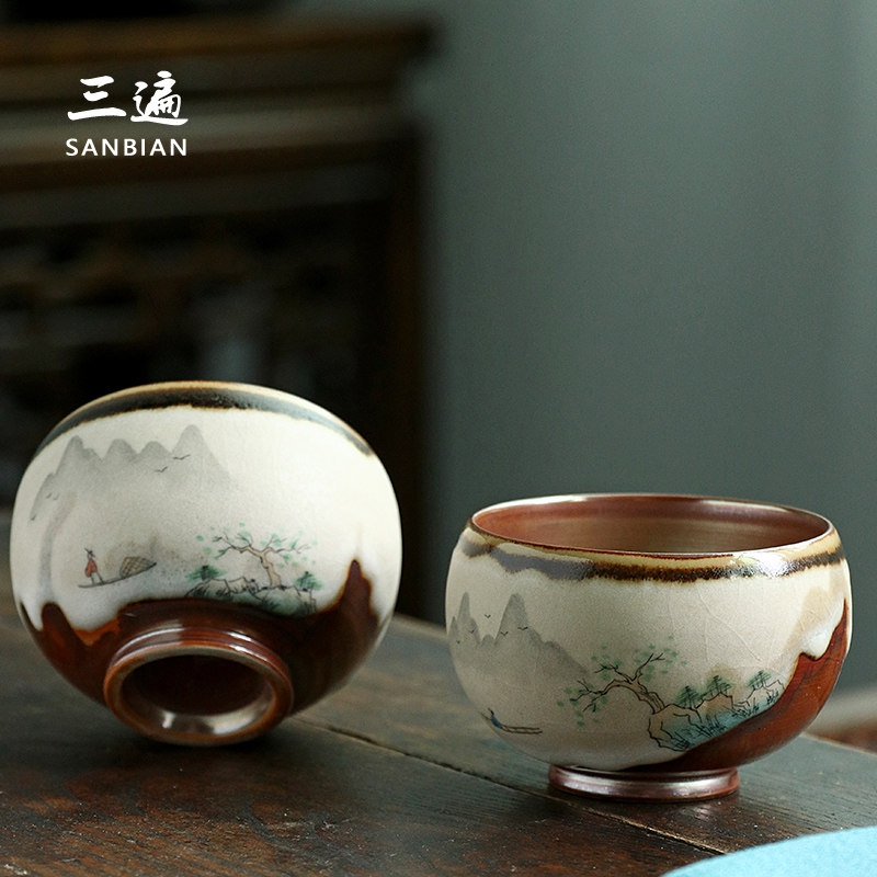 Three times Jingdezhen hand-painted master single cup Japanese fire cloud tea lamp Handmade Kung Fu tea cup Tea cup