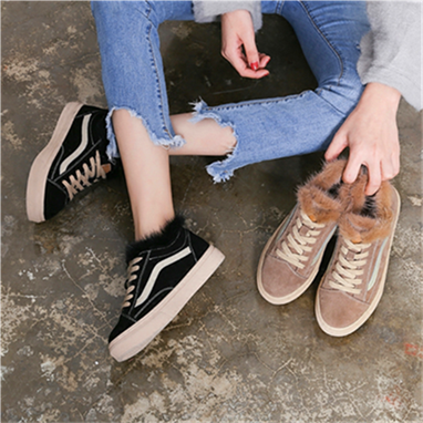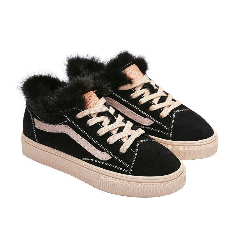 Tide brand 2021 autumn and winter Korean version ins all-match casual shoes women's plus velvet warm plush shoes student flat shoes