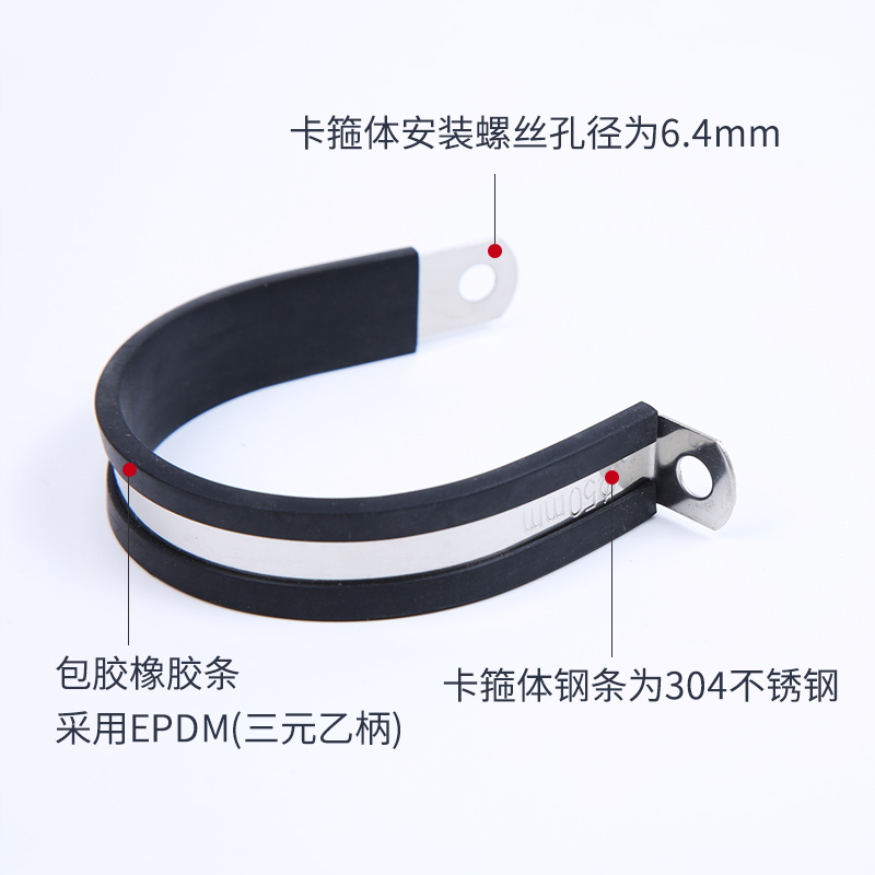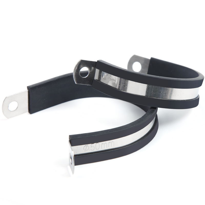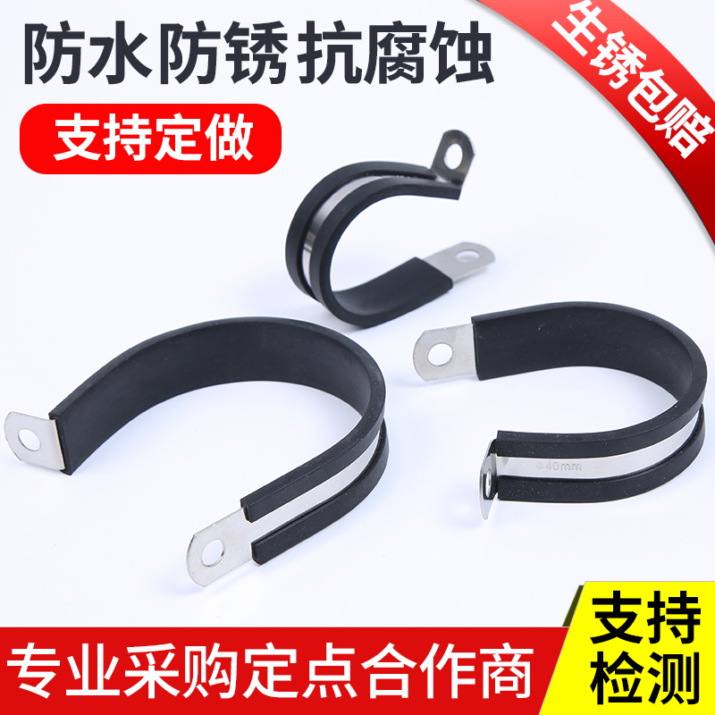 304 Stainless Steel Tandem Adhesive Tape Laryngeal Hoop R Type Fixed Tube Card U Type Riding Card Holder Rubber Shock Absorbing Hoop