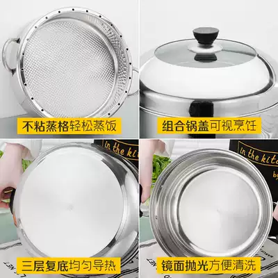 Original steamer Household steamer Stainless steel steamer non-skewer cooking dual-purpose large multi-layer water-separated steamed rice