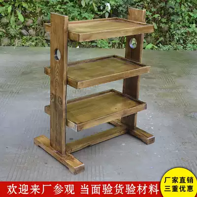 Hot pot restaurant vegetable rack Multi-layer solid wood carbonized vegetable rack Three-layer fire wood shelf Kitchen hotel vegetable rack