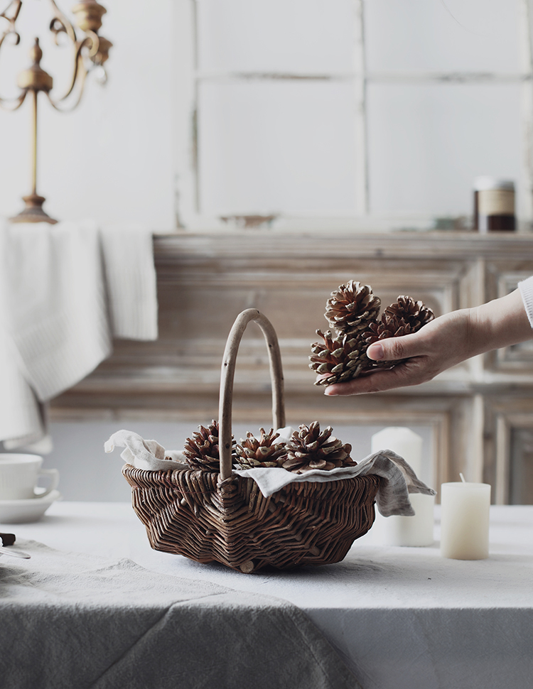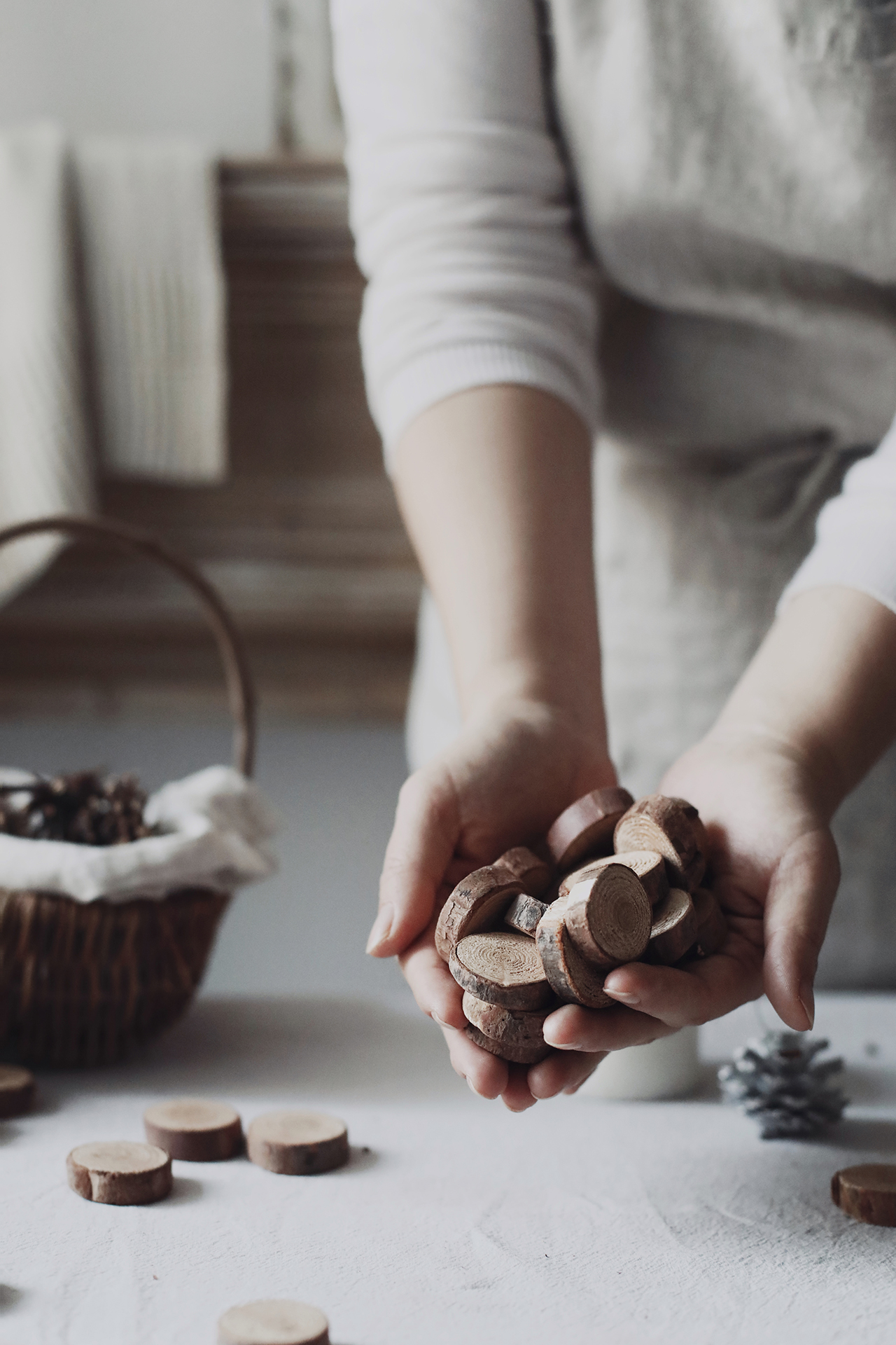A bag of round wood chips, a bag of birch branches, a bag of white-edged oil pine cones, a bag of big tower pine cones, a bag of larch pine cones, a bag of natural oil pine cones, a bag of small sticks
