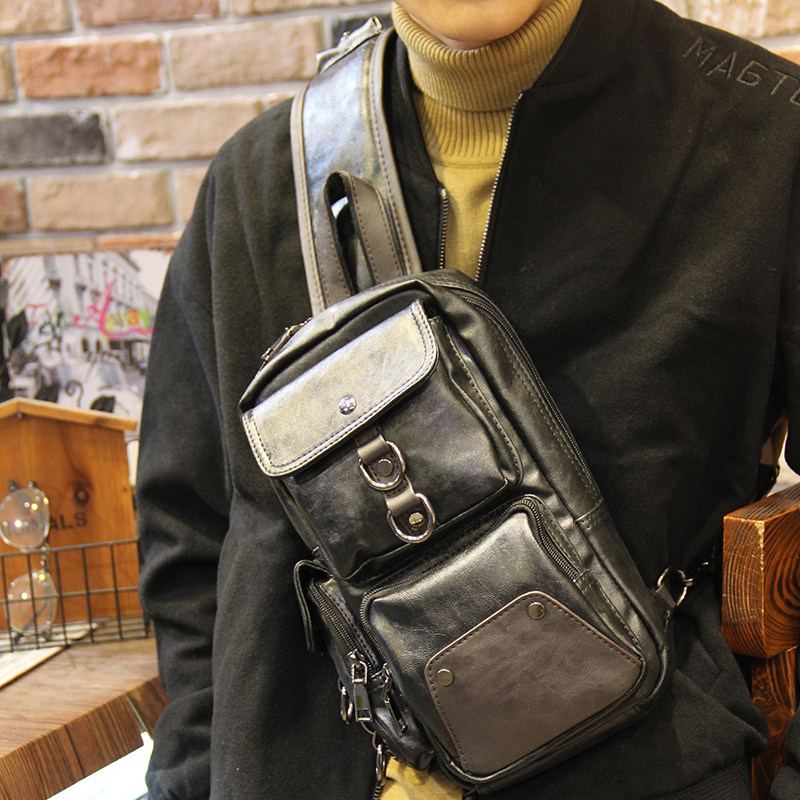 Men's chest bag 2022 new fashion minimalist Tide Cards Casual Little Scapegoat men's bag trendy single shoulder inclined satchel cortex