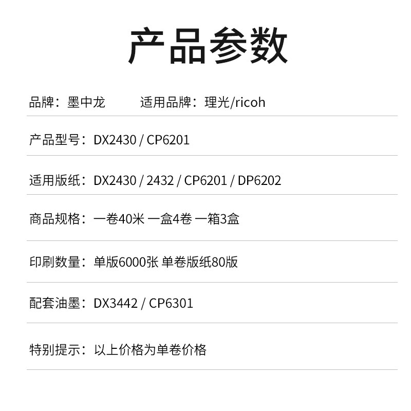 Ink Dragon is suitable for Ricoh ricoh speed printing machine priport dx2432C wax paper DX2430MC plate paper 6201 6202 plate making paper DD2433C digital integrated machine version of paper wax paper