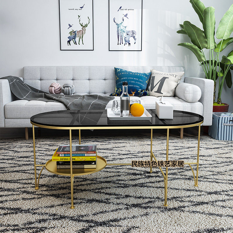 Nordic tempered glass tea table Living room Home sofa Table side Several small family Tea table oval Tie small table